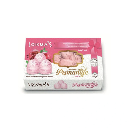 🇬🇧 Lokma's Pişmaniye with Pomegranate 300 g modernizes the Ottoman cotton-like sweet by infusing it with natural pomegranate juice — a fruit symbolizing abundance in Ottoman culture. The result is delicate strands of buttery sugar with a soft tart twist and pink hues. Packaged in a 300 g box, it’s perfect for elegant gatherings or gifting. Free from preservatives and artificial colors — its beauty lies in the natural flavors of pomegranate and tradition.
